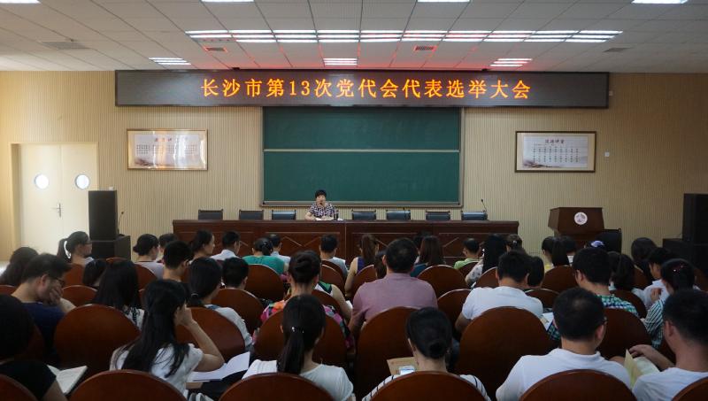 7月22日上午,我校在道德讲堂召开长沙市第13次党代会代表选举大会,会议由党总支书记钟慧莉主持。