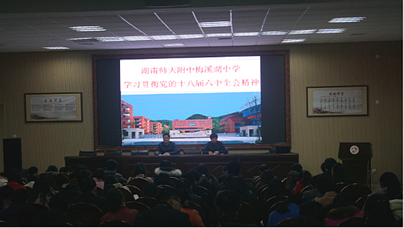 12月1日下午,我校在道德讲堂组织学习了党的十八届六中全会及省第十一次党代会。会议由党委书记钟慧莉主持,全体党员参加会议。