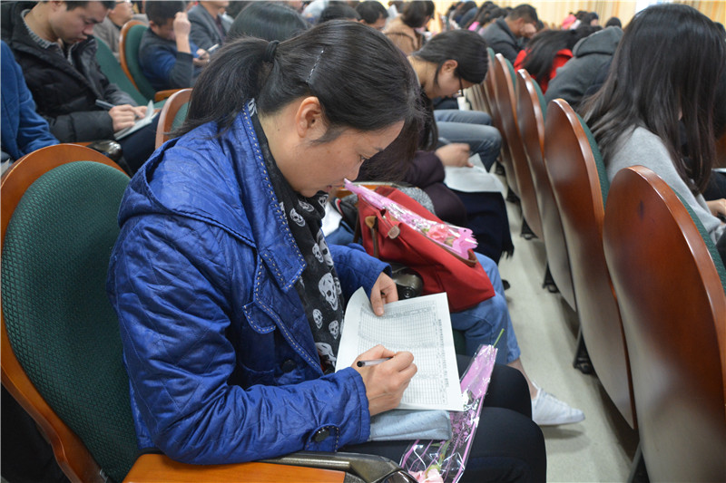 3月8日,我校在道德讲堂召开2016年度民主评议党员(群众)测评大会,会议由党委书记钟慧莉主持,全体教职工参加此次大会。
