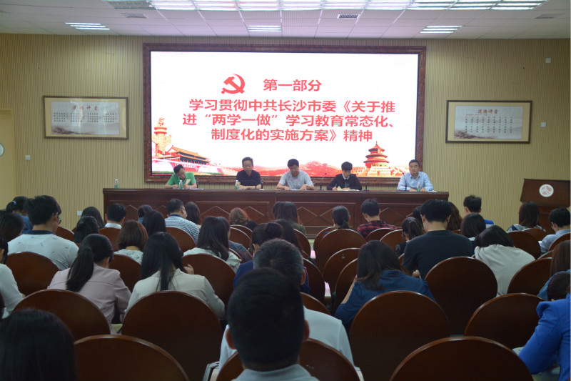 校党委书记钟慧莉首先就“两学一做”上一阶段的工作进行了总结:各级党支部按照学校党委的统一部署,牢牢把握住了“基础在学,关键在做”的要求,围绕学校教育教学中心工作,深入扎实地开展“两学一做”学习教育,取得了较好的成果。突出表现在党的组织生活更加严格规范,党员的党性和主动性、思想引领和理论武装、痕迹管理意识有了明显增强,师德师风建设有亮点、干事创业有成效。接着钟慧莉书记向全体党员传达了下一阶段“两学一做”学习教育的工作计划,她向全体党员详细地解读了中共长沙市委《关于推进“两学一做”学习教育常态化制度化的实施方案》的相关文件要求。她强调全体党员要充分认识到开展“两学一做”学习教育对于发挥党的政治优势、保持党的先进性和纯洁性、增强党的生机活力的重大意义。各基层党支部要切实贯彻执行“两学一做”学习教育的有关要求,坚持全覆盖、常态化、重创新、求实效,在真“学”实“做”和知行合一上深化拓展,在以上率下和工作深度融合上落实责任,在问题整改和制度完善上精准发力,推动“两学一做”融入日常、抓在经常、形成常态,取得长效。
