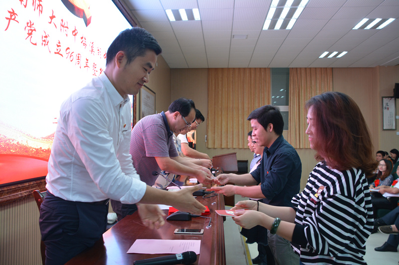 副校长胡惠宣读了《关于接收陈高峰等4名同志为中共预备党员的决议》,并给新党员赠送党章、党徽。随后,张志副校长领誓,预备党员陈高峰、罗澄洋、周涛、邓超面向党旗庄严宣誓,全体党员重温入党誓词,时刻牢记神圣使命。