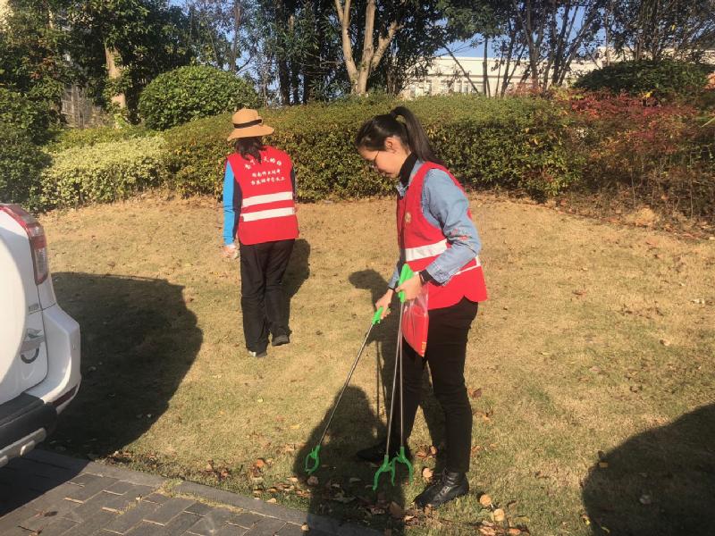 11月19日下午,高二年级党支部在联点领导、党委书记钟慧莉,年级组长方煦,支部书记刘女兢的组织带领下到桃花岭捡拾垃圾、清理水面垃圾。