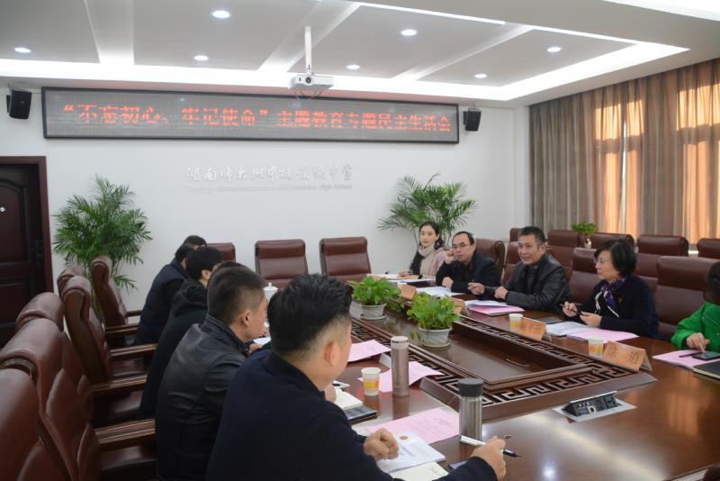 12月5日,根据市委、局党委关于“不忘初心、牢记使命”主题教育的部署要求,经局党委主题教育指导组同意,我校2019年度“不忘初心、牢记使命”专题民主生活会在图书馆一会议室召开。主题教育市委指导组第十六组副组长刘金田,市教育局副县级干部、主题教育第一指导组副组长谢平升,市教育局政策法规处处长、主题教育第一指导组联络员周小青,开福区团委副书记陈逍,市教育局主题教育第一指导组组员颜小聪到会指导。我校党委全体班子成员出席会议,会议由党委书记钟慧莉主持。