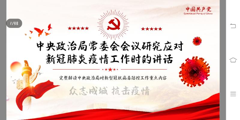 一、学习中央精神,关注防疫文件。2月1日,高三年级开始线上授课,年级老师一边精心备课录课,组织线上学习,一边密切关注党中央关于防疫工作的指示,积极学习上级主管部门防疫期间的教育工作部署。高三党支部书记佘玉梅老师把《中央政治局常委会会议研究应对新冠肺炎疫情工作时的讲话》制作成课件,并推荐了“学习强国”上的相关视频,组织老师们在群里学习和讨论。年级支委会还转发了《2020年长沙市春季开学准备与疫情防控工作方案》,供老师们认真研读。老师们纷纷表示,通过学习,对国家疫情防控要求有更深的体会,对战胜疫情更加有信心。