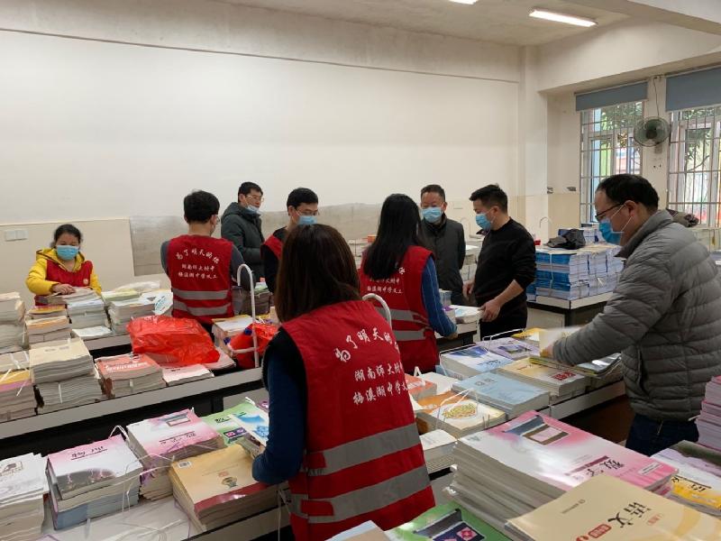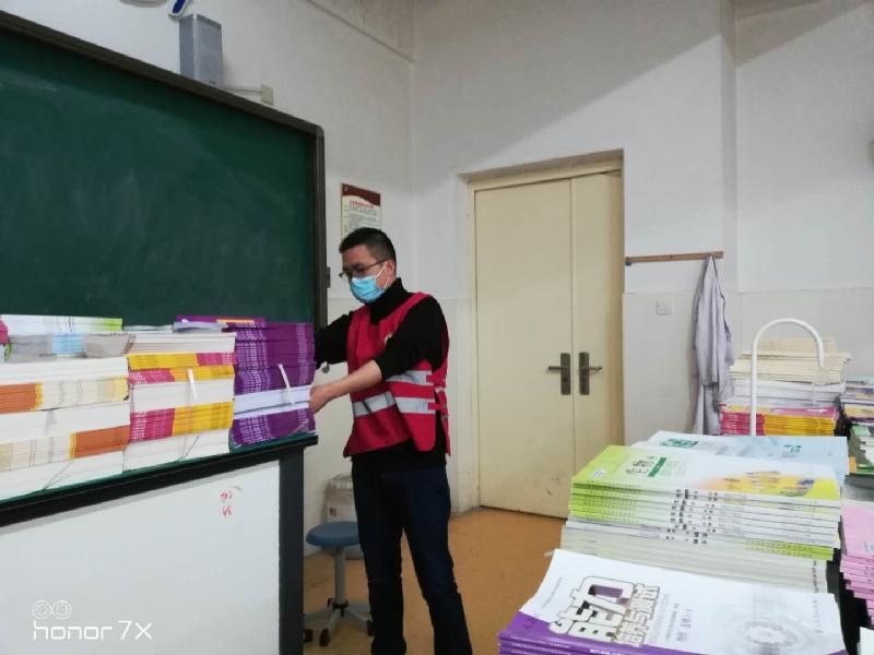春风三月,万树已青。由于疫情影响,原本应该热闹的校园多了几分宁静,学生们只能宅在家里进行“停课不停学”。就在这个特殊时期,考虑到学生已经上新课没有教材,高一党支部在学校党委的号召下,于3月13日上午进行了一场特殊的志愿活动。当天上午9:00—12:00,高一党支部的7名党员、班主任老师在年级组长李文纲,支部书记彭水珍的组织下,校长张迪平的现场指导以及总务处主任胡海军的全程指导下,将高一年级442位同学的总计10608本教材进行了整理归类,将每一位同学的书进行分装打包。在各班家委会志愿者的帮助下,对一部分住得近的同学的书采取直接送到同学家里,另外一部分住得远的学生的书采取现场邮寄的方式快递到家,确保了每一位同学都拿到书,为新学期保驾护航。就在学生们拿到书后的第一时间,很多家长表达了对老师们的谢意,特别感谢老师们的考虑周全以及辛勤的付出;学生们手捧沉甸甸的教材,心里热乎乎的,高1907班陈一焱同学这样写到:“疫情阻碍了我们上学的道路,并没有阻碍我们学习的心,及时地拿到了教材,对我来说如雪中送炭,对于所有的学生来说,上课之于书,就如同汽油之于汽车。感激我们学校一马当先、老师甘于奉献,在疫情危急的时候克服万难,心念学生,整理我们亟需的书本。动作迅速、落实到位、解决了我们的燃眉之急、保证了全校线上教学的稳定有序发展,捧着教材心里总有一种莫名的温暖,我们在家学习哪能不发奋苦读呢?