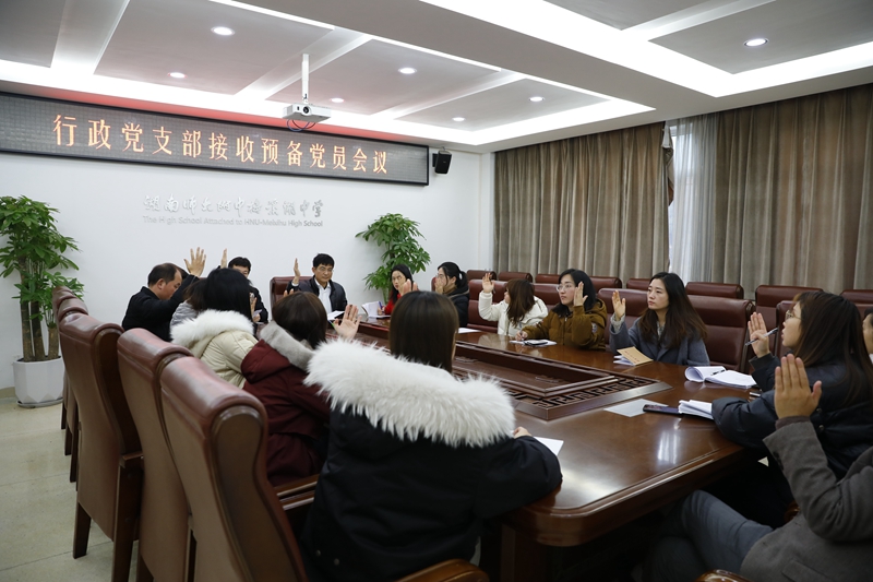 12月14日,行政党支部召开会议,对是否接收发展对象唐智明成为预备党员进行表决。会议由党支部书记胡海军主持。联点领导、校办主任兼保卫处、外事办主任胡田超出席会议。18名行政支部党员和列席代表曹稳参加会议。