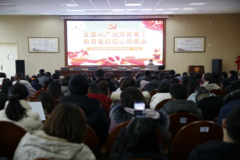 2月27日,我校在道德讲堂举行了全面从严治党专题讲座。学校领导班子、中层干部和全体教职工参加学习活动。本次讲座特邀请长沙市教育局党委委员、市纪委市监委驻市教育局纪检监察组组长谢小红主讲,学校党委书记钟慧莉主持。