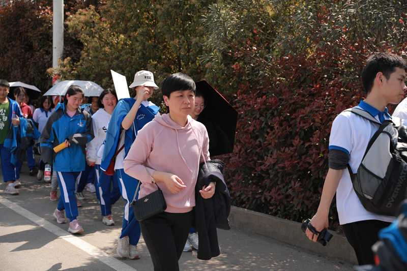 老师们在陪同同学们行进过程中讲述着长征故事,同学们侧耳倾听,深受教育。在雷锋纪念广场,G1907班同学罗晨带领全体师生朗读《雷锋日记》,学习雷锋同志“把有限的生命融入到无限的为人服务”的崇高精神;大家还高声齐唱《没有共产党就没有新中国》进一步抒发对党、对国家和对新生活的热爱之情。