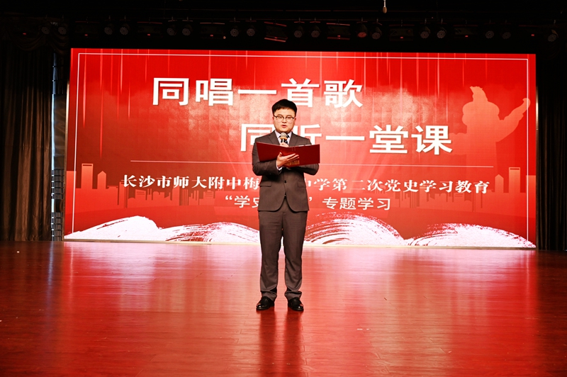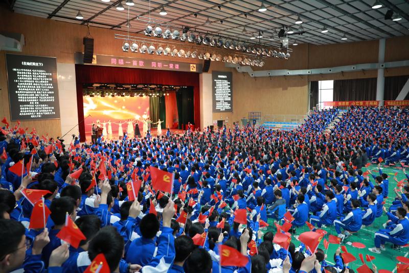 从小爷爷对我说吃水不忘挖井人曾经苦难才明白没有共产党哪有新中国。”伴随着优美的歌声,4月21日下午,我校3000余名师生同唱一首歌、同听一堂课,开展了一次别开生面的党史学习教育。活动由党办主任张丽、少先大队辅导员汪鹏主持。