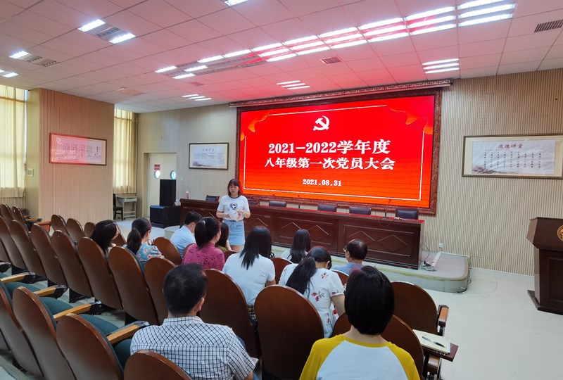 第一阶段,八年级所有党员教师参加新学年第一次全体党员大会,会议由校长张迪平主持,党委书记钟慧莉作报告。