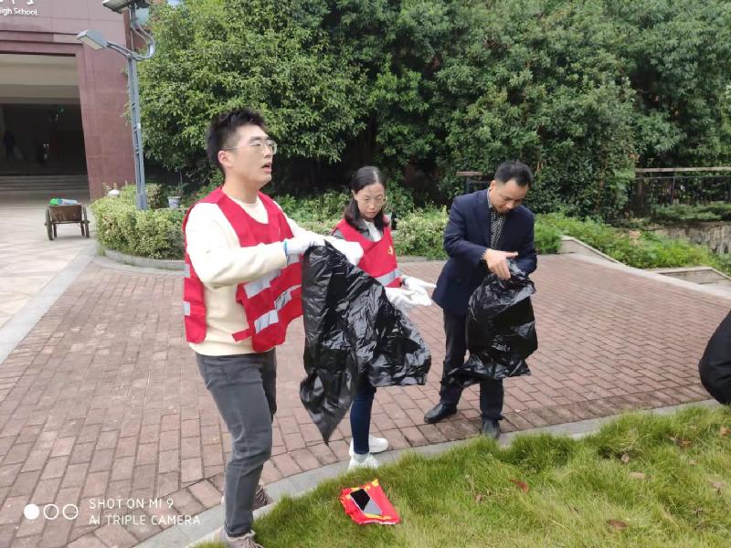 10月13日下午,由高一年级全体教师组成的志愿者小分队在年级组长胡建国老师及九年级支部书记李琼老师的带领下对校园环境开展了除草美化活动。党员教师做在前头,干在前头,全体教师积极响应活动,对学校东门周边的杂草、垃圾等进行了清洁,在大家的共同努力下,学校环境更加干净、整洁。