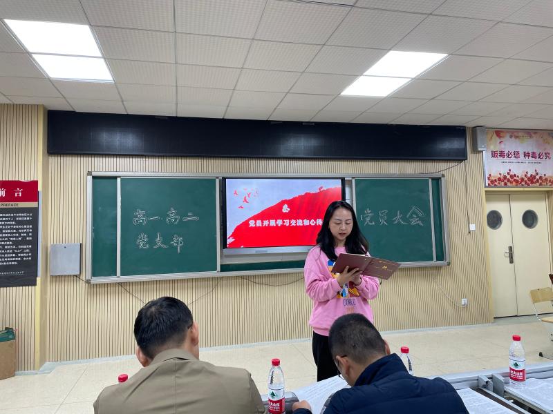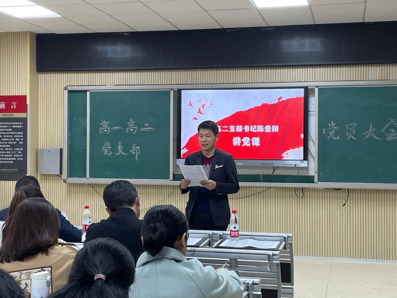 11月3日下午,高一、高二年级党员教师在B栋研修教室召开了以“团结奋进聚合力,创新实干开新局”为主题的高一、高二党支部党员大会。此次会议由高二年级党支部书记陈爱国主持。