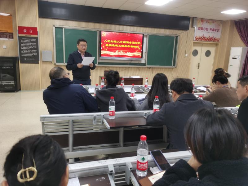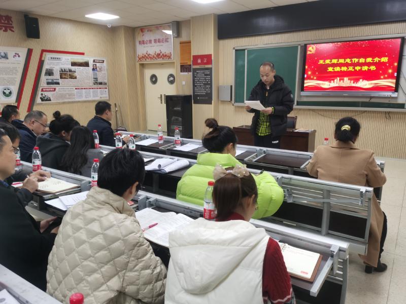 12月9日下午,高三党支部在教学楼二楼研修室召开党员转正大会,讨论陈一星、唐智明、王武辉等三位同志的转正事项。会议由支部书记彭水珍主持,支部全体党员参加了大会。