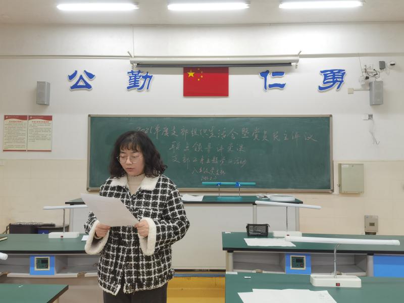 大会结束后,八年级在科技楼二楼实验室召开2021年度组织生活会和民主评议党员大会。会议由支部书记曾楚羚主持,联点领导胡惠和八年级全体党员参加了会议。