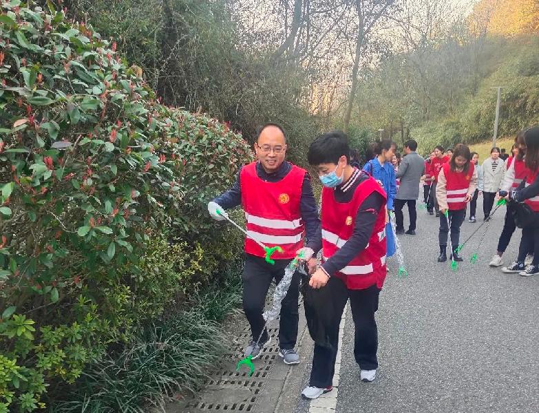三月春风暖人心,雷锋精神永传承。为进一步落实并传承雷锋精神,深化和增强党员奉献服务意识,3月8日下午4:30,高二党支部在校党委的组织下,全体支部党员集合于桃花岭下,参加 “登高健身,环保随行”党员志愿服务活动。党员们精神抖擞,意气风发,身着红色志愿服务服,手持捡垃圾夹和塑料袋,一路上,在领略美丽的自然风光、呼吸山间清新空气的同时,一边将游客沿途丢弃的矿泉水瓶、烟头、瓜果皮等垃圾装进塑料袋。一边提醒游客注意环境保护、注意自身安全。桃花岭上其他散步的游客们见到了沿途捡拾垃圾的师梅党员老师们,纷纷投来了赞许的目光。经过近一个半小时的努力,大家拎着大包小包的“战利品”悉数登上了山顶,桃花岭上又恢复了往日靓丽的身姿。此次活动,党员们既放松了心情,锻炼了身体,增进了友谊,又为生态文明建设奉献了自己的一份力量。
