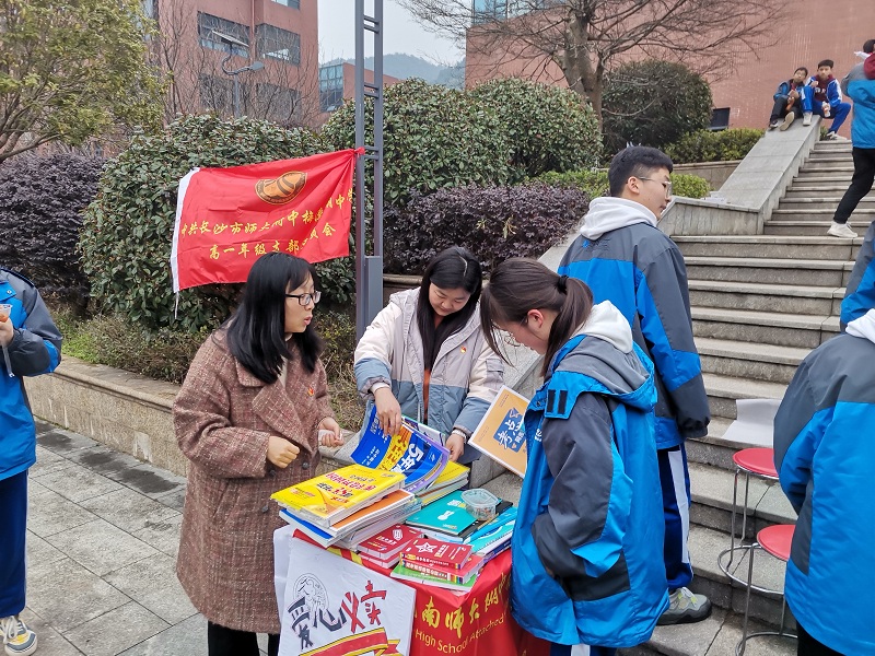 3月4日,高一年级组党支部号召学生开展“雷锋家乡学雷锋”学生志愿活动,全年级数百学生组成的数十个爱心小分队,在学校漉泉广场开展了爱心义卖活动,为我校对口支援的贫困学校学生和社区贫困家庭筹集善款。同学们怀着“奉献、友爱、互助、进步”的志愿者精神,与支持义卖活动的师生一起分享爱心传递的喜悦。不少家长也参与到活动中,他们表示,“这次义卖促进了亲子关系,更为孩子们提供了一个社会实践的机会,更让一颗爱的种子在心中发芽!”