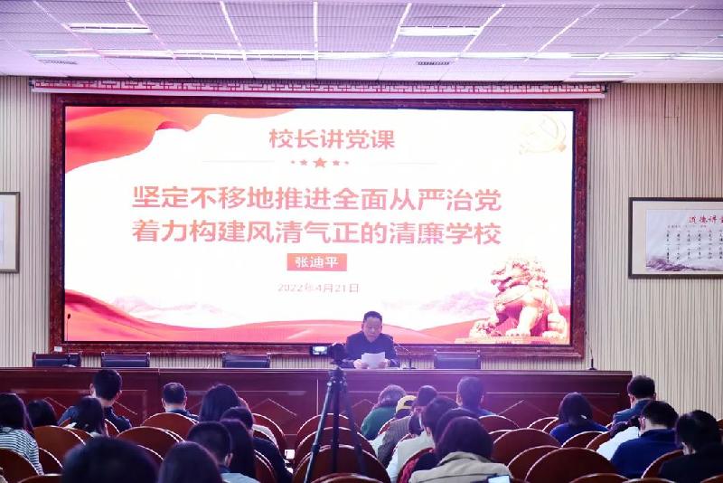 比赛结束,校长张迪平以《坚定不移地推进全面从严治党,着力构建风清气正的清廉学校》为题,给全体党员上了一堂党课。张迪平对学校2022年全面从严治党工作进行安排,提出三个方面的意见:一是精准把握“严”的形势,切实增强全面从严治党的责任感和紧迫感;二是突出重点明确任务,推进全面从严治党向纵深发展;三是全力抓好贯彻执行,落实全面从严治党任务。其中,他着重阐述了2022年全面从严治党的重点工作为:加强政治、思想、队伍、组织建设、制度、作风、清廉建设。为推进学校全面从严治党向纵深发展,张迪平对全体党员提出了三点要求:一要在学深悟透中筑牢信仰之基;二要在遵规守纪中强化敬畏之心;三要在苦干实干中强化担当之责。
