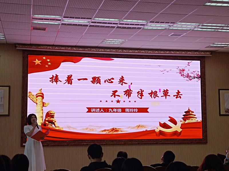 为加强师德师风建设,讲好师梅人的教育故事,4月21日,学校举行了主题为“廉洁从教立师德 不忘初心树师风”的师德师风演讲比赛暨4月主题党日活动。本次活动九年级党支部蒋玲玲老师发表了题为“捧着一颗心来,不带半根草去”的演讲。通过讲述九年级老师们在教书育人过程中的真情故事,映照恪尽职守、乐教善育、无私奉献的师梅人,展现勇于担当、甘为人梯,闪耀着师德光辉、坚守在教育一线的普通教师。她说到:“那间教室,放飞的是希望,守巢的总是你;那块黑板,写下的是真理,擦去的是功利;那支粉笔,画出的是彩虹,洒下的是泪滴;那个讲台,举起的是别人,奉献的是自己。我想这便是对优秀师梅人最好的写照。路漫漫其修远兮,吾将上下而求索。愿我辈教师能以优良的师德师风立德树人,立足工作岗位,切实做到:认真用心,独具匠心,将心比心,多些耐心,充满爱心,付出真心,寡欲清心,坚守良心,保持恒心,不忘初心,大家万众一心,聚力凝心让师梅的发展振奋人心!”本次活动展现了师梅许多优秀的同仁。教室中,飘荡着的是他们语重心长的话语;走廊里,来往着的是他们忙碌的脚步;夜深时,清晰着的是他们伏案备课的身影。他们不是超人,却用双肩担起了教育的重任;他们不是诗人,却用青春书写了爱的篇章。本次演讲比赛,九年级党支部蒋玲玲老师通过出色的演讲,动人的表达打动了在场的评委老师和观众,获得演讲比赛的一等奖。