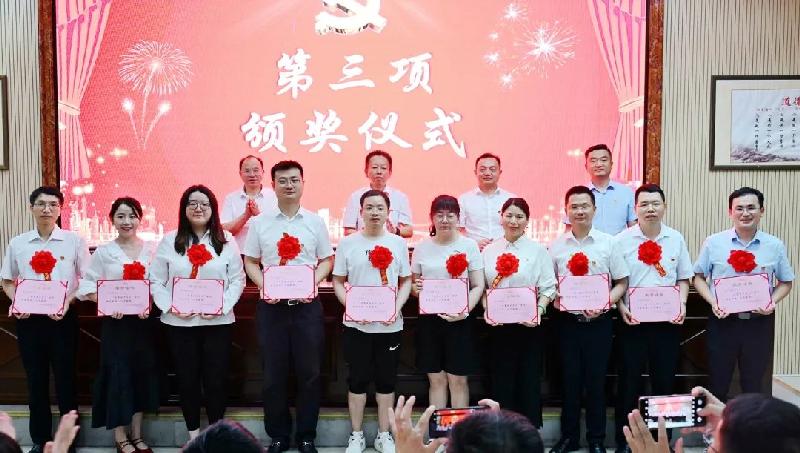 此次庆祝活动简洁又庄重,校长张迪平、党委书记许庆丰、副校长胡惠、张志为一批优秀共产党员、优秀党务工作者、先进基层党组织、优秀示范岗代表颁发了荣誉证书。高一年级组党支部书记李琼荣获优秀党务工作者、胡建国老师、龚兴浪老师荣获优秀党员荣誉。
