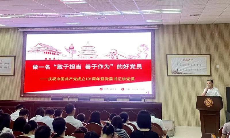 为庆祝中国共产党成立101周年,进一步在学校党员队伍中营造学习、工作创优争先的良好氛围,7月1日,在伟大的党生日这一天,高一年级组党支部举行了“喜迎二十大 争做好党员”庆祝中国共产党成立101周年暨七月主题党日活动。全体党员齐聚一堂,在雄壮的国歌声中颂党恩,庆七一。