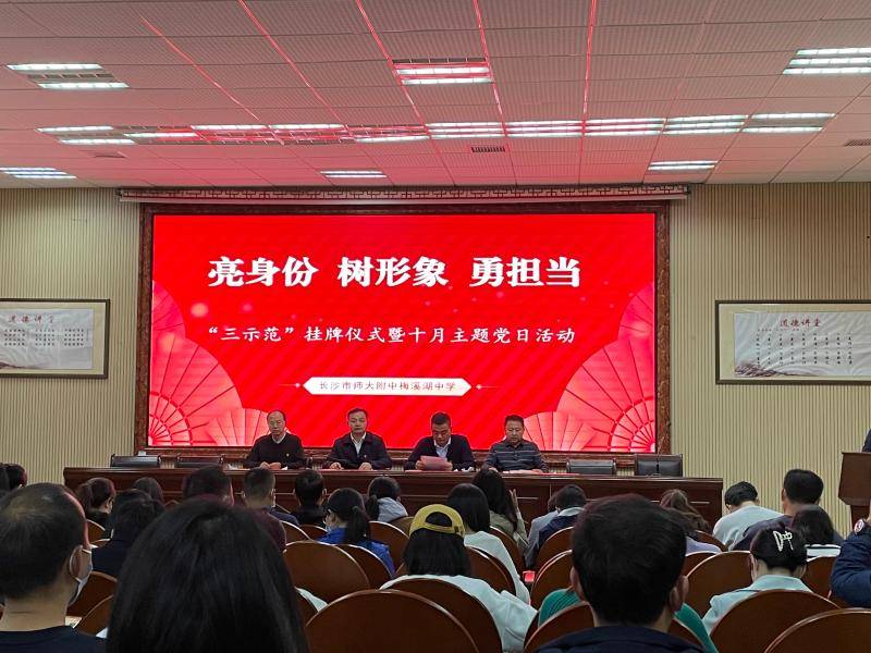 校长张志宣读了党员示范岗、示范班、志愿服务队的授牌决定。高二年级学考护航示范岗由全体高二年级班主任团队组成,高二2101班被授予党员示范班,党员教师成立了绿色环保志愿服务队。这些授牌和示范岗的背后展现了一个个凝聚奋进的团队。授牌仪式结束后,示范班、示范岗、志愿服务队代表胡建国、罗澄洋和邓涛老师郑重领取授牌。校党委书记许庆丰讲授微党课。他进一步要求全体党员践行二十大精神,立足岗位,发挥党员先锋模范作用。高二年级也将在校党委的带领下,真正践行承诺,做好示范,踔厉奋发。