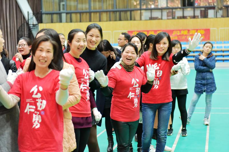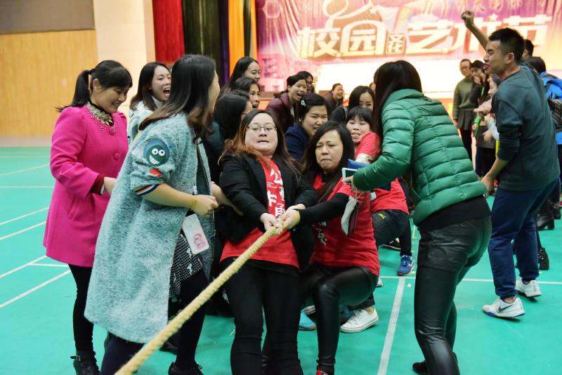本次比赛共分为五个队伍,分别由行政工会组、高二工会组、高一工会组、八年级工会组、七年级工会组组成。为了活跃气氛,比赛以单循环方式进行,随着裁判曾仲明老师的一声哨响,拔河比赛拉开了序幕。比赛中,每个队队员都心往一处想、劲往一处使,齐心协力、不甘落后,而其他老师们则在一旁加油打气、呐喊助威。这一场景充分体现出女老师们积极向上的活力和出色的团队合作精神,整个体艺馆欢声笑语,成为了欢乐的海洋。经过激烈角逐,最终八年级工会组和行政工会组分别斩获冠亚军。