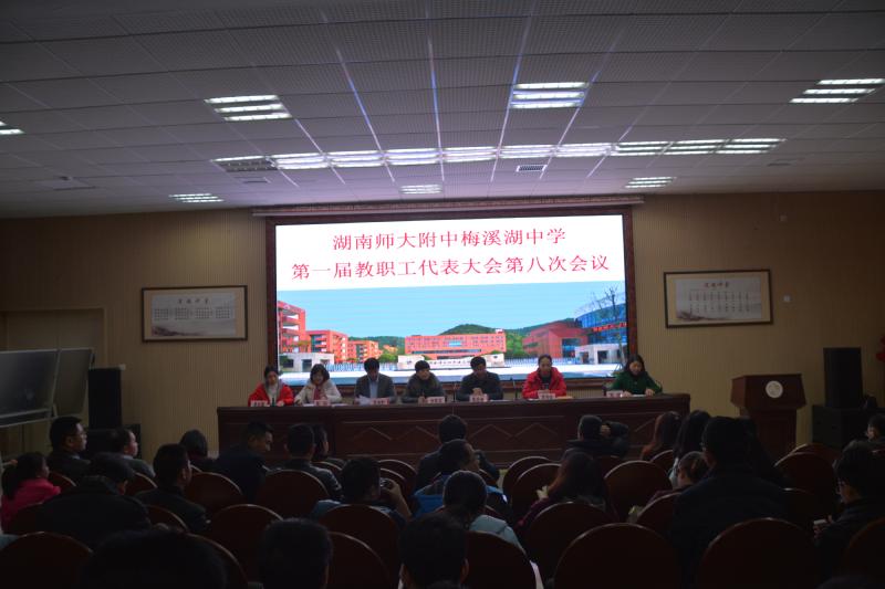 12月28日,我校第一届教代会第八次会议在《国歌》声中拉开帷幕。筹备近一月的会议在道德讲堂举行。校长晏荣贵、党委书记钟慧莉、教科室主任李湘黔、团委书记罗煦洁、工会副主席宋珍、特级教师张宇、校医易灿辉7人作为本届教代会的主席团成员出席会议。全体教代会代表和列席代表参加了会议。