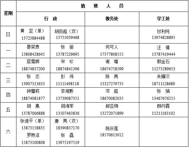 3.当日值班行政人员将值班情况发至QQ群和微信群。