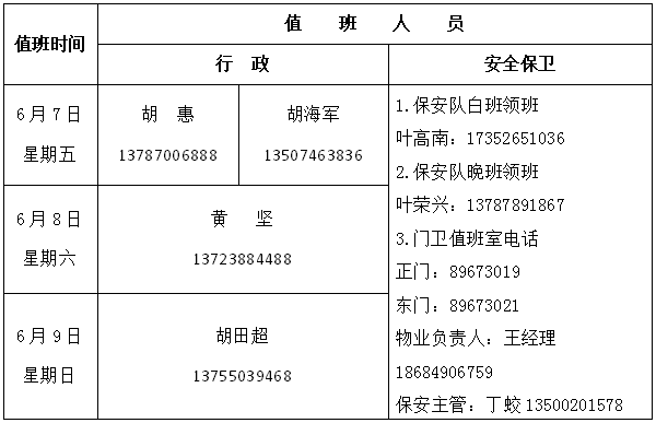 1.按时到岗(上午8:00—11:30,下午14:00—17:30;保卫24小时);
