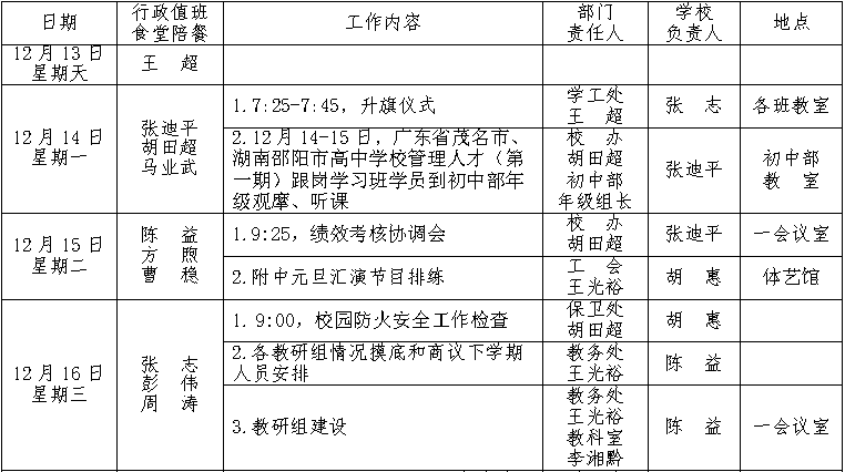 第16周工作安排:2020年12月13-19日 来源:校办 发布时间:2020-12-14 11:28:30 浏览次数: 次 【字体:小 大】 聚彩彩票2020-2021学年度第一学期 第16周工作安排表 (2020年12月13-19日) 校办公室 2020年12月13日 分享到: 【打印正文】