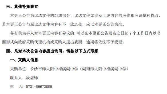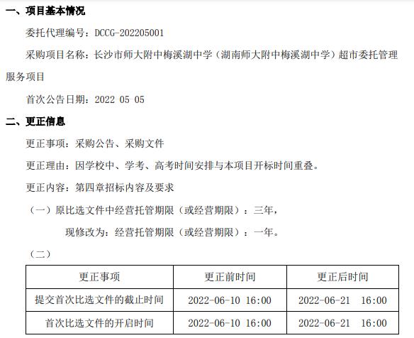 长沙市师大附中梅溪湖中学(聚彩彩票)超市委托管理服务项目第2次更正公告