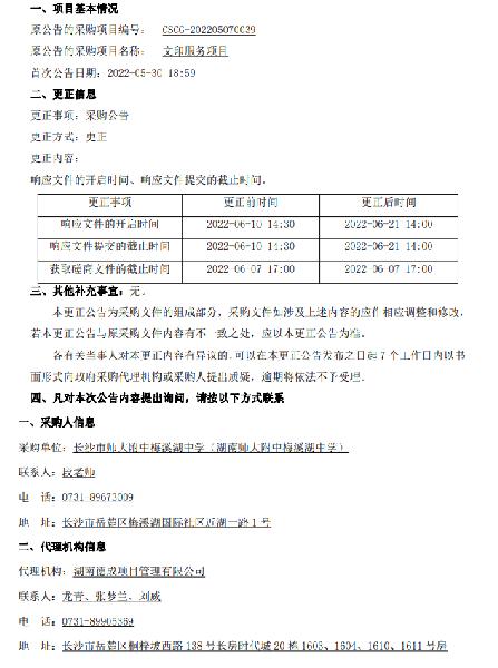长沙市师大附中梅溪湖中学(聚彩彩票)文印服务项目第1次更正公告