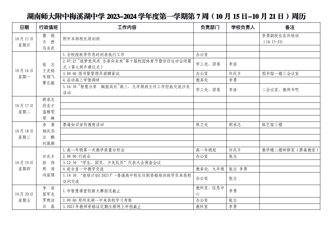 2023-2024学年度第一学期第7周周历