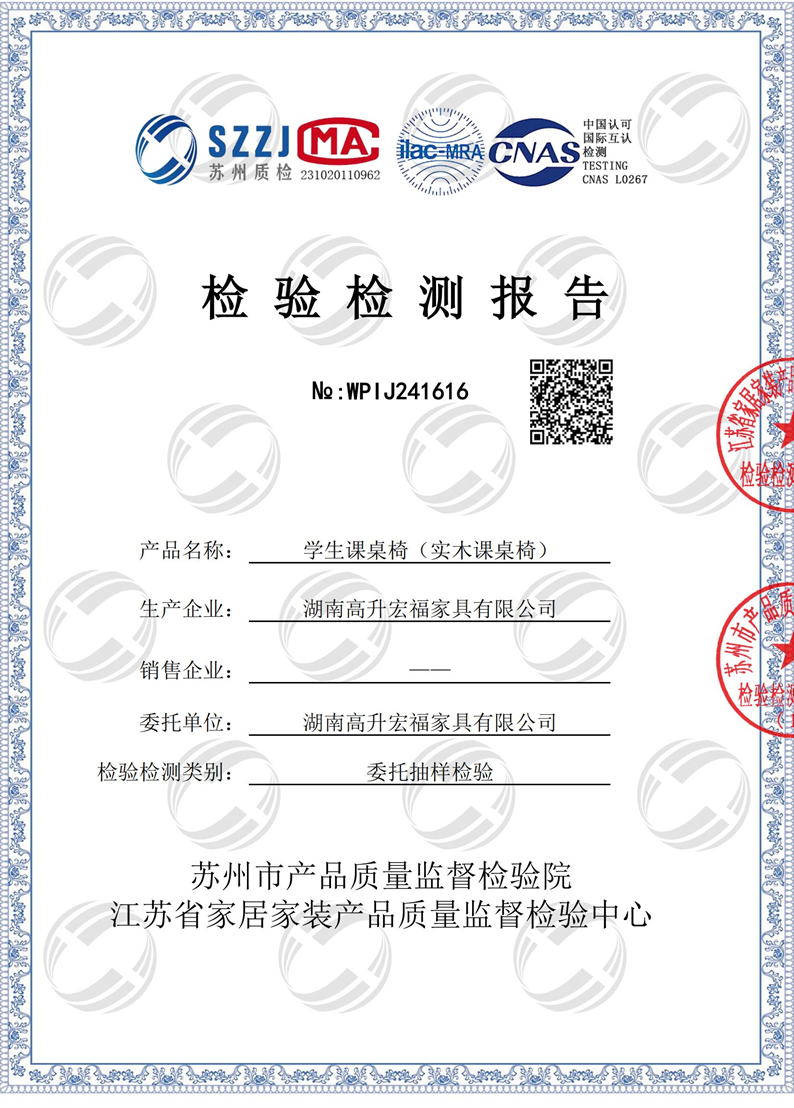 学生课桌椅(实木课桌椅)检验检测报告