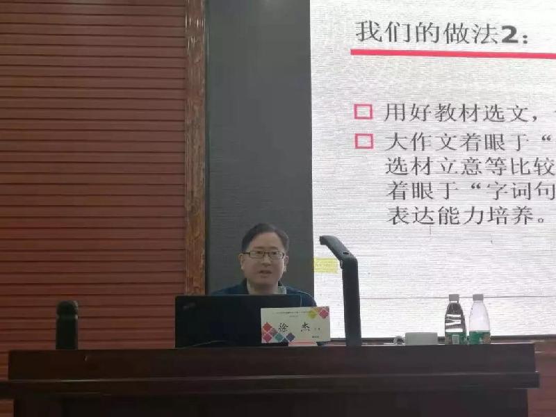 在读写结合课示范课上,徐杰老师选了绘本《开往远方的列车》,通过讲故事的方式,一步步引导孩子们说和写,不知不觉中打开了孩子们的思维。徐老师边引导边鼓励边修正,让孩子们在愉快的讲故事的过程中掌握作文的方法。在随后的专题讲座中,徐老师跟大家详细分享了他的作文教案。在语文的作文教学中,对作文课写教案的人很少,但这一份工作,徐老师却做的非常详细和周到,当然效果也是非常显著,这让老师们大开眼界、恍然大悟!