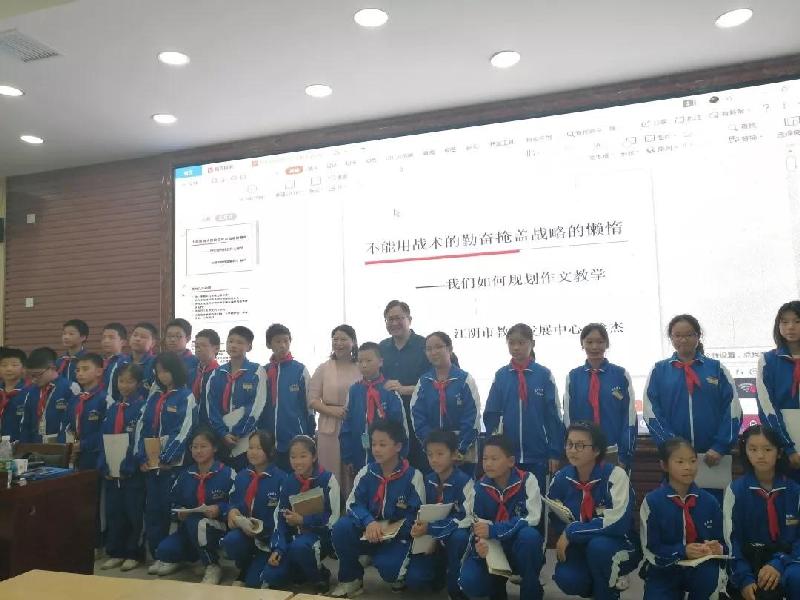 在熊芳芳老师执教的《跟汪曾祺学讲故事》的示范课上,熊老师通过《鸡毛》一文,带领孩子们体验文章中的巧妙安排之处,从而在潜移默化中教会了孩子们如何讲好故事。随后,熊老师以“激活写作思维,绽放生命魅力”为主题,为与会老师带来了另一场写作教学感悟。