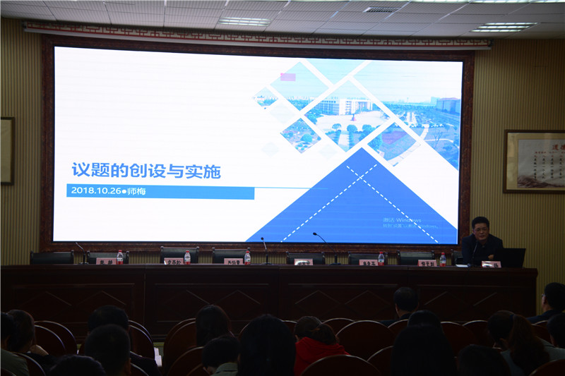 第三个环节由长沙市政治首席名师张扬作专题讲座《议题的创设与实施》,他分别从“何为议题教学”“如何创设议题”“如何实施议题”三个层面进行阐述,并结合教材《发展生产,满足消费》进行具体议题创设分析,从理论层面到实际课堂操作展现议题教学的独特魅力,同时他对我校以及政治教研组全体成员对本次工作的支持表示诚挚感谢。