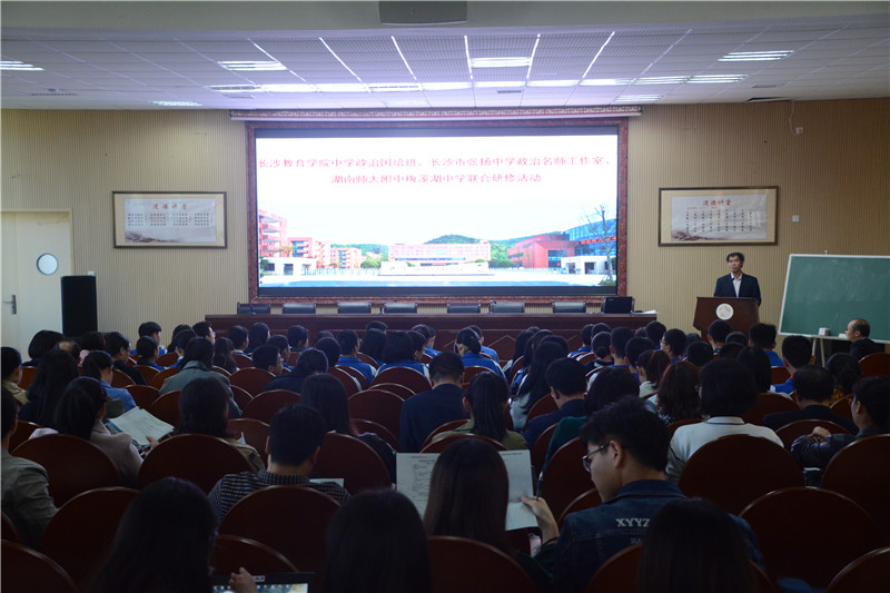 10月26日,长沙教育学院中学政治国培班、长沙市张扬中学政治名师工作室、聚彩彩票联合举办的研修活动在我校道德讲堂举行。长沙教育学院中学政治国培班成员、长沙市张扬中学政治名师工作室成员以及我校领导和政治教研组全体老师参加活动。活动由长沙教育学院特级教师唐良平主持。