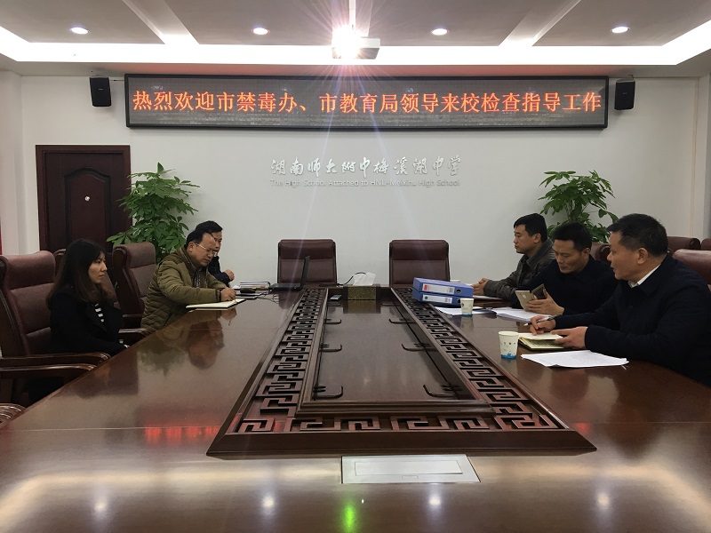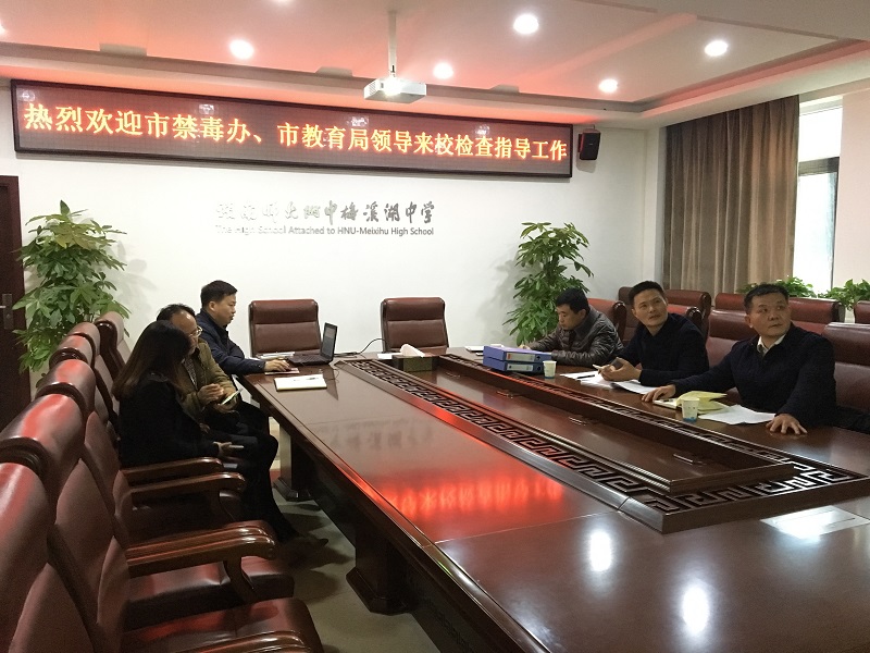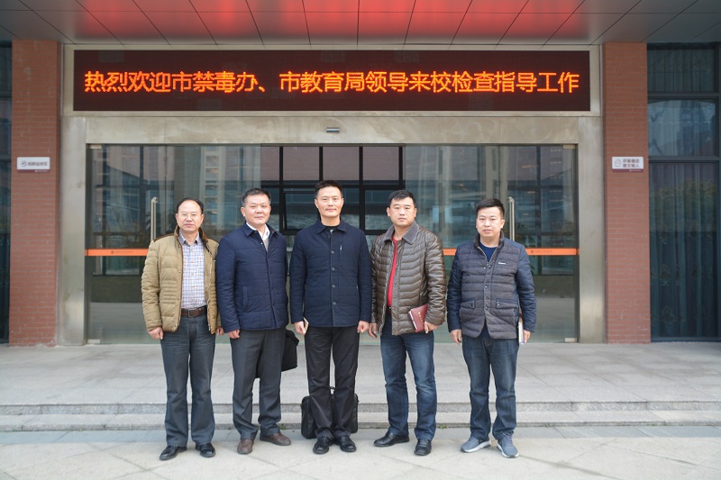 12月4日,长沙市禁毒办副主任、市禁毒支队副支队长欧建平,长沙市禁毒支队罗坚站长,长沙市教育局安全处胡光林到我校,检查验收市级毒品预防教育示范学校创建工作。副校长胡惠、保卫处主任兼校办副主任胡海军全程陪同检查。