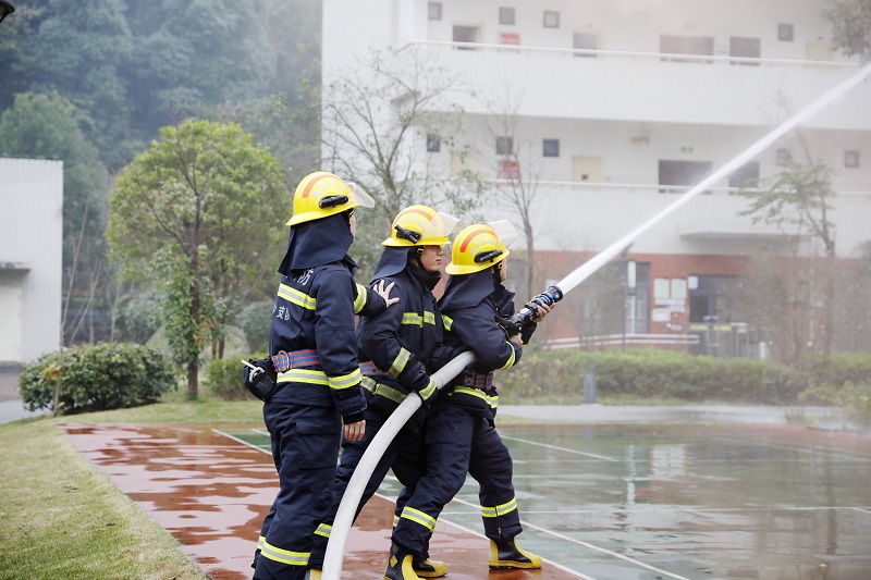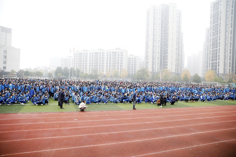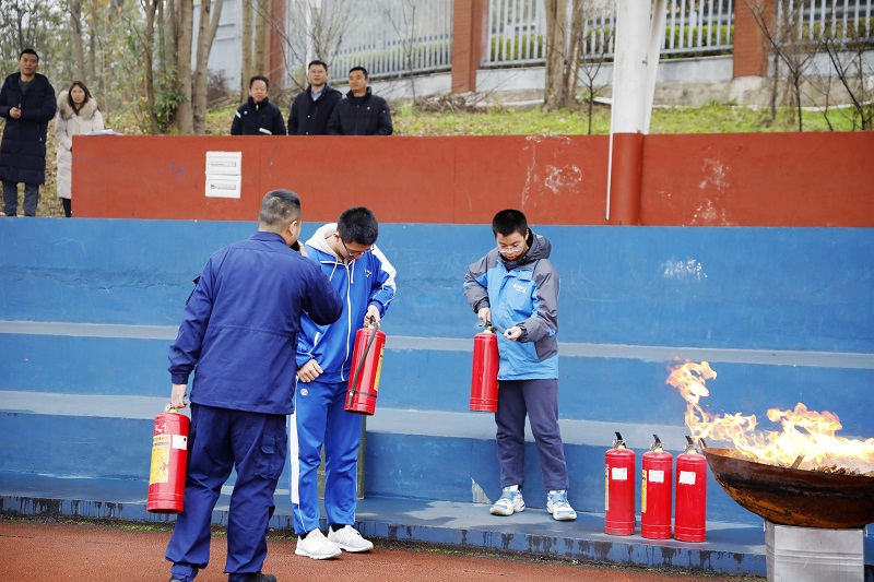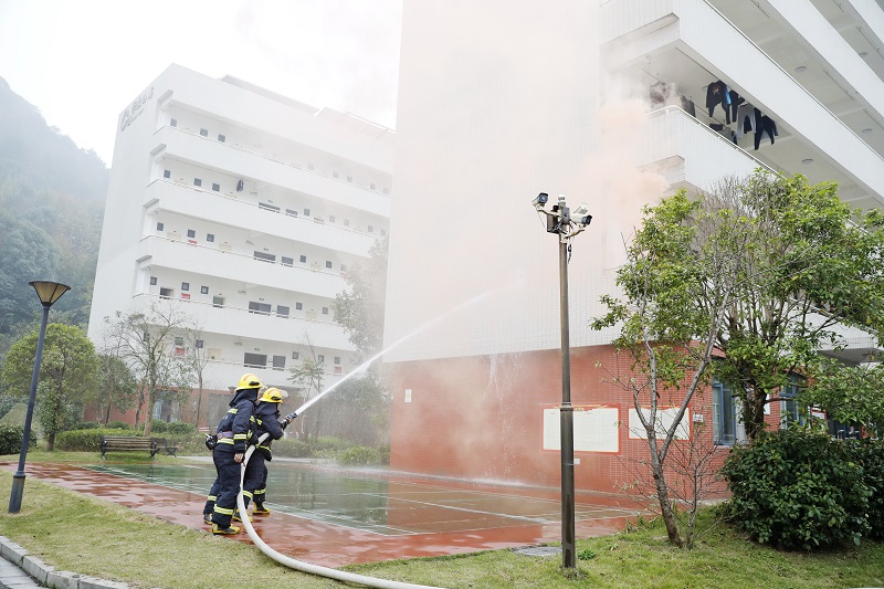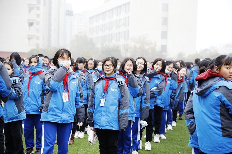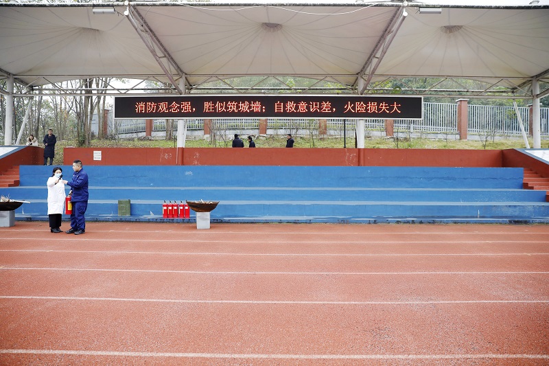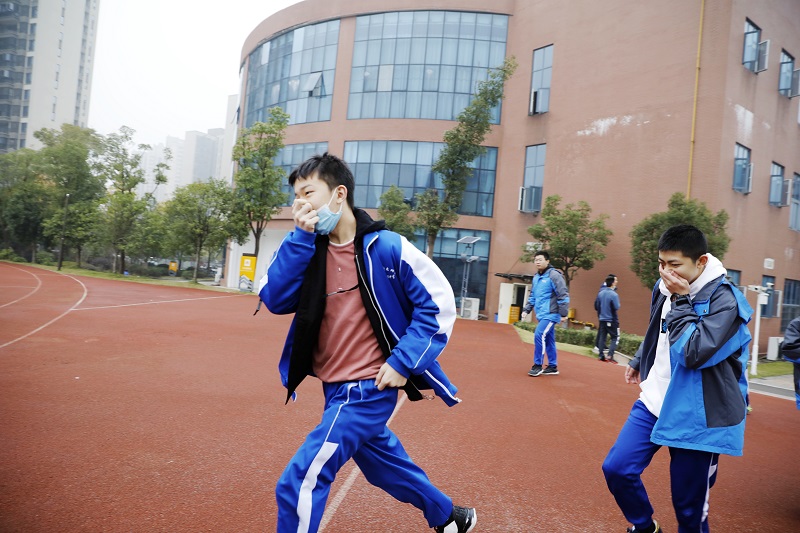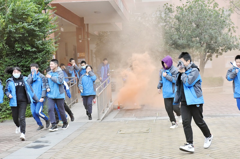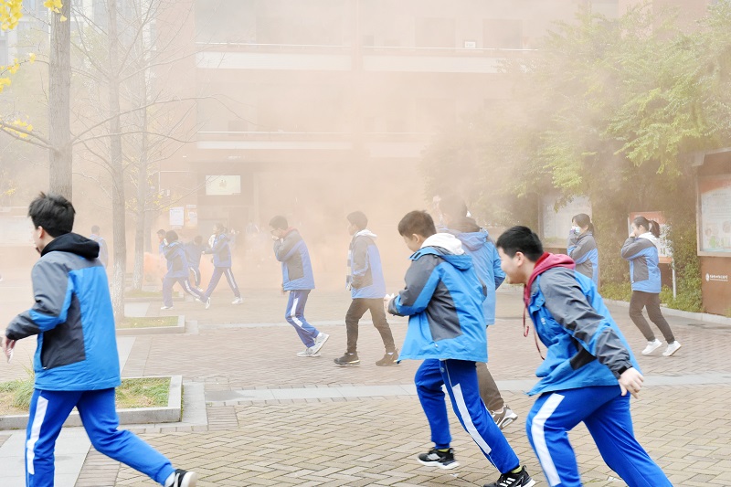 上午9点21分,随着校园广播系统拉响警报,各班主任、各岗位工作人员立即引导同学们穿过用烟雾弹制造的火灾情景,有序撤离到田径场安全地带。疏散活动全程平稳、顺利、安全,消防演练达到预期效果。