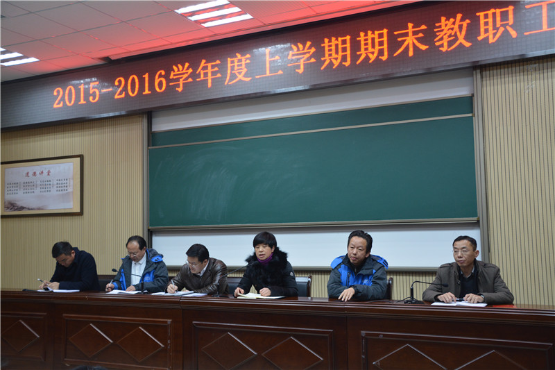 1月21日下午,学校2015-2016学年度上学期期末教职工大会在教学楼三楼道德讲堂举行。校长彭荣宏,党总支书记钟慧莉,副校长胡惠、张迪平、张志,校长助理屈雪辉出席大会。会议由钟慧莉主持。全校教职工参加了会议。