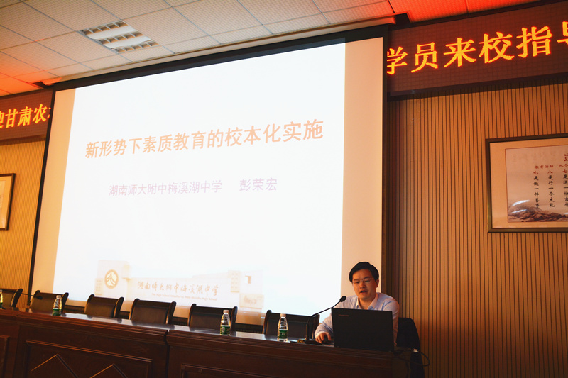 4月13日,湖南第一师范继续教育部党支部书记曾小玲率甘肃农村中小学校长能力提升项目培训班120名学员来校考察交流。我校校长彭荣宏,副校长胡惠,校办主任谭伟热情接待了客人。