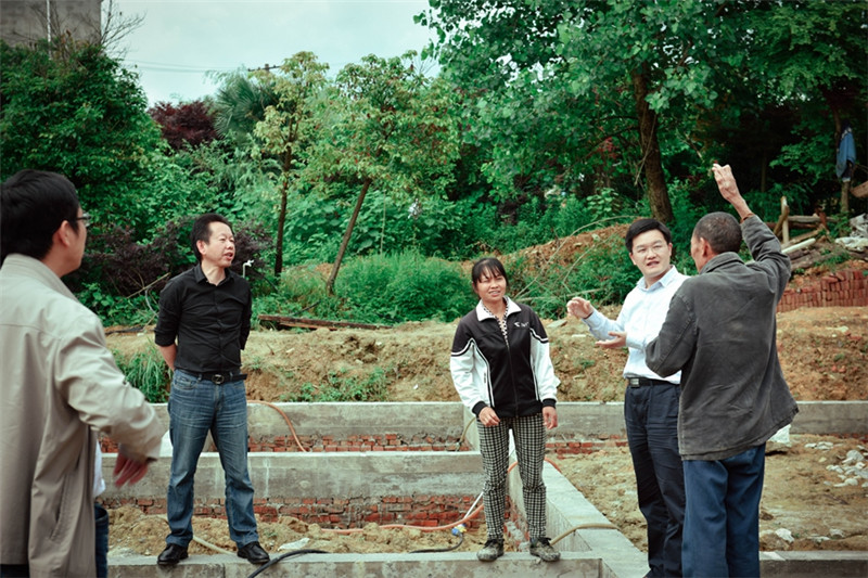 彭荣宏分别代表附中本部和我校送上慰问金和物资。临走前,一行人来到苏家新建房的宅基地,与苏家商量下一步建房规划。苏进雄一家在地基前与彭荣宏一行欢快畅谈,憧憬着未来的生活,掩饰不住内心的喜悦。