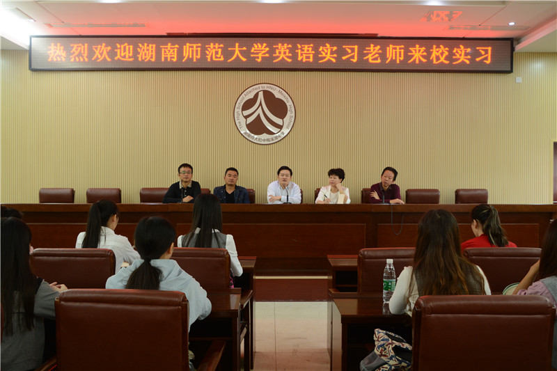 10月9日上午,湖南师大外国语学院20名学子在指导老师朱小丹的带领下来我校实习。我校在图书馆三会议室召开了欢迎会。校长彭荣宏,副校长张迪平、张志,教务处主任梁平出席会议。会议由梁平主持。