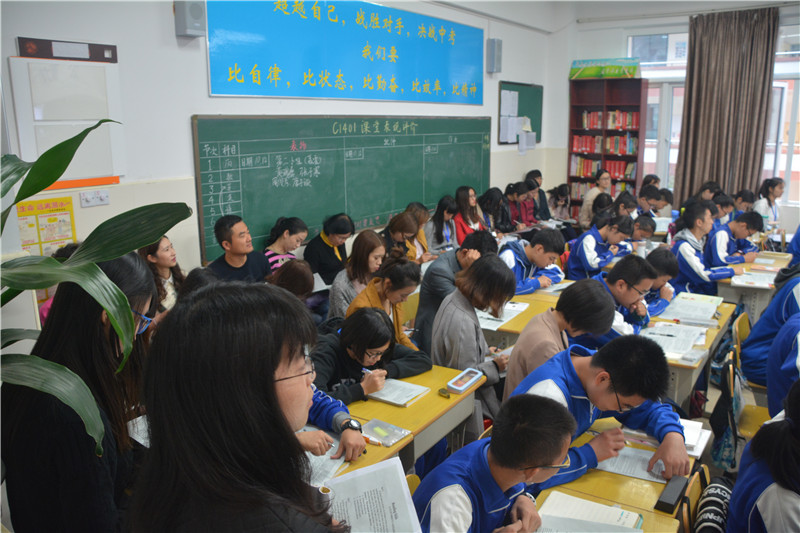 随后,专家们对九年级七个学科进行了随堂听课,具体了解了我校九年级教学情况。课后,两校老师分学科进行了全面研讨。专家们高度评价了我校教师的教学水平和学生的学科素养,指出了授课老师教学的优缺点,并且介绍了丰富的管理经验和复习课教学方法。