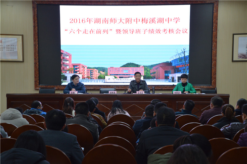 考核小组参加了在道德讲堂召开的“2016年度‘六个走在前列’大竞赛暨领导班子绩效考核会议。全体行政人员和教师代表共计60人参加了大会。会议由钟慧莉主持。