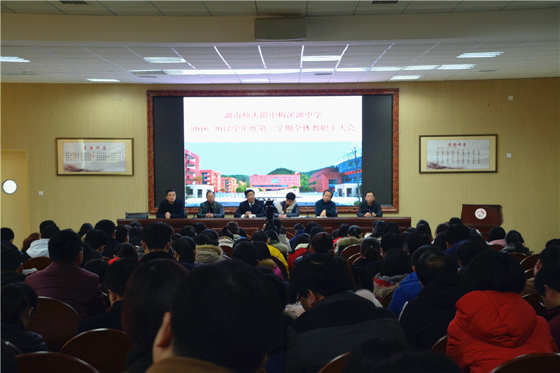 2月11日上午,2016-2017学年度第二学期全体教职工大会在道德讲堂召开。校长晏荣贵,党委书记钟慧莉,副校长胡惠、张迪平、张志,校长助理屈雪辉出席会议并在主席台就坐。会议由晏荣贵主持,全体教职工参加会议。