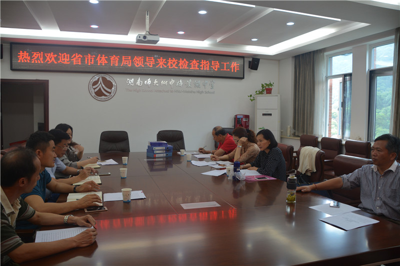 张志详细汇报了我校体育工作的开展情况和体育特色,重点介绍了武术和足球项目建设情况,明确提出我校体育传统项目校的建设模式。随后,检查组根据《长沙市体育传统项目学校评估表》,逐项检查了相关材料,并实地查看了田径场、武术房等处。检查组认为我校体育传统项目建设的定位准,条件好,师资强,同时,也提出要加强痕迹管理,提高特色项目的学生参与度。