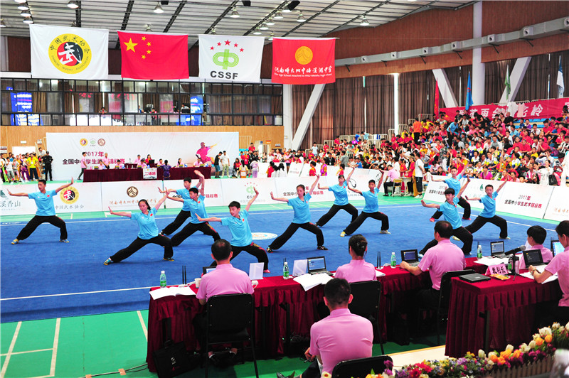 2017年全国中小学生武术锦标赛火热开赛 来源:校办 发布时间:2017-07-11 23:14:40 浏览次数: 次 【字体:小 大】 7月11日,2017年全国中小学生武术锦标赛正火热开赛。来自全国各省市中小学的1100多名武术健儿齐聚我校,共修武德,共磋武艺!南拳、长拳、南刀、刀术、剑术、南棍、枪术、棍术、太极拳、太极剑、自选拳术、单器械、双器械、软器械、对练等多个竞赛项目精彩纷呈。集体项目的恢弘气势,个人项目的高超武艺令所有人连连赞叹少年的德艺双馨和国术的精深奥妙。 分享到: 【打印正文】