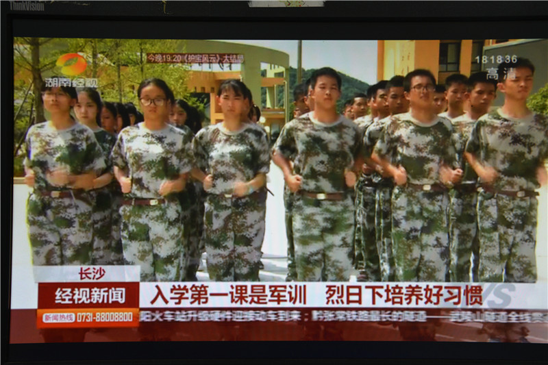 当晚18:10,湖南经视频道在《经视新闻》栏目以“入学第一课是军训,烈日下培养好习惯”为题报道了我校军训情况。